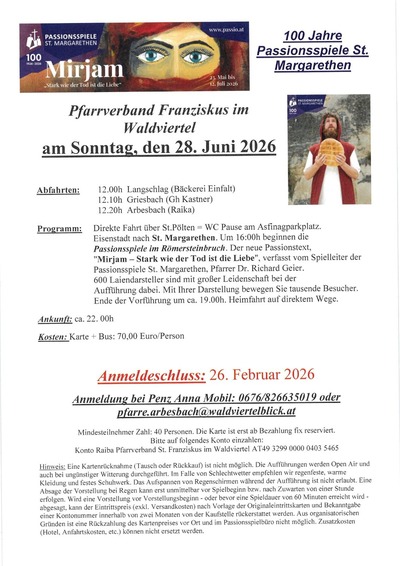 Vorverkauf: Ab jetzt in der Pfarrkanzlei Groß Gerungs zu den Kanzleizeiten.