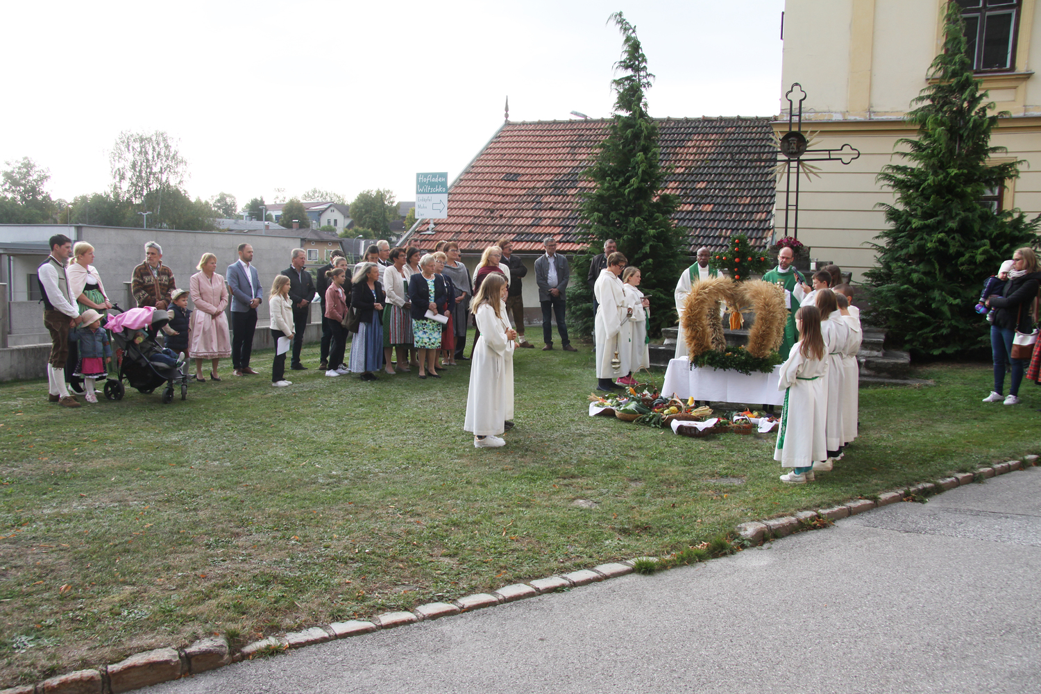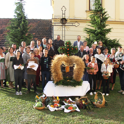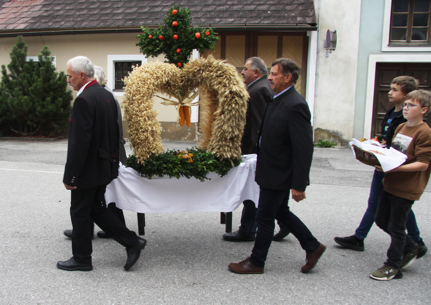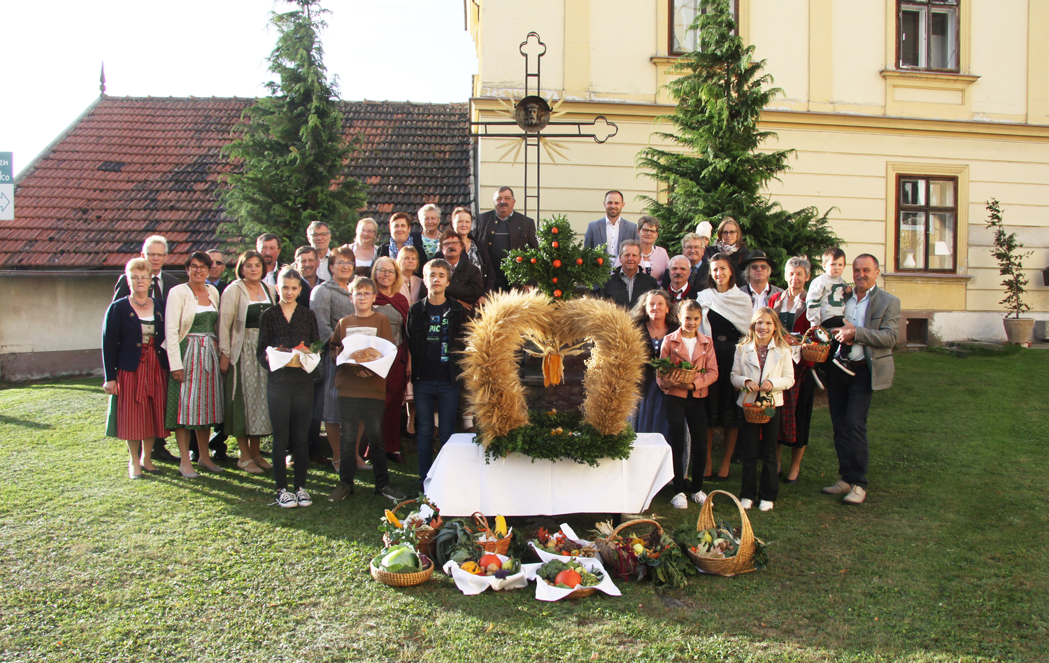 Die Dorfgemeinschaft Oberrosenauerwald brachte die Erntekrone und die Erntegaben.