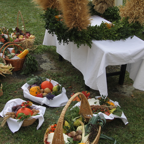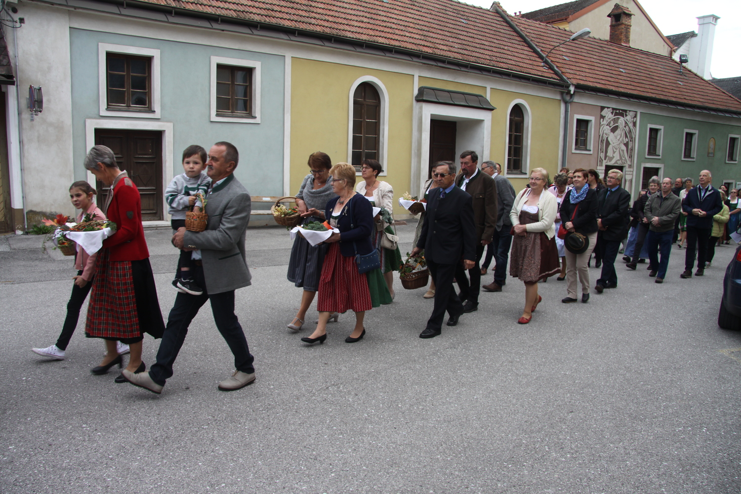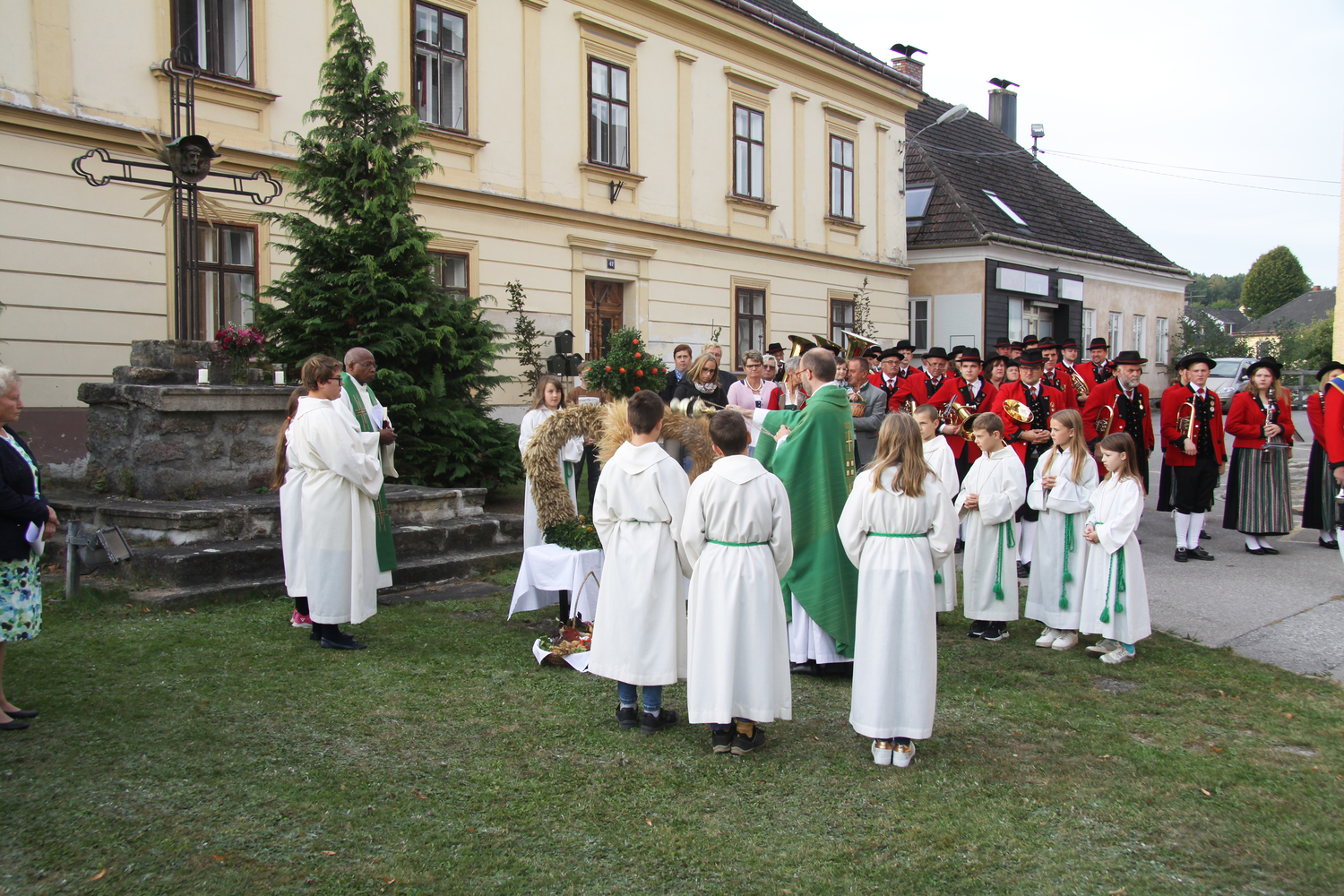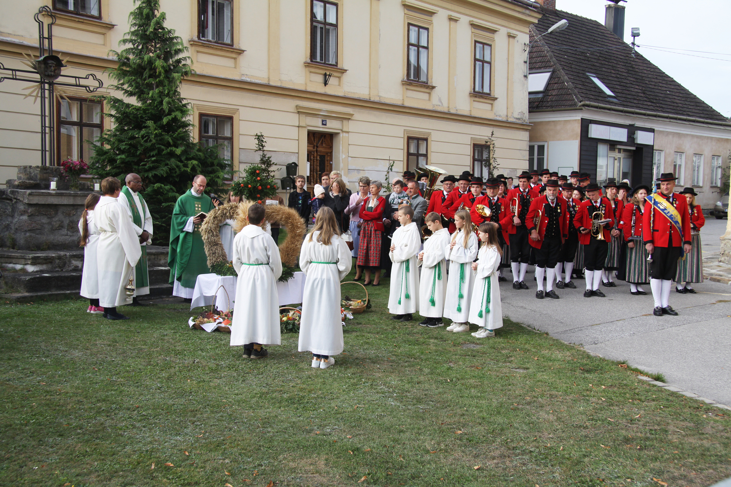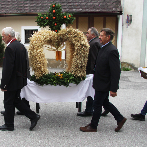 Die Dorfgemeinschaft Oberrosenauerwald brachte die Erntekrone und die Erntegaben.
