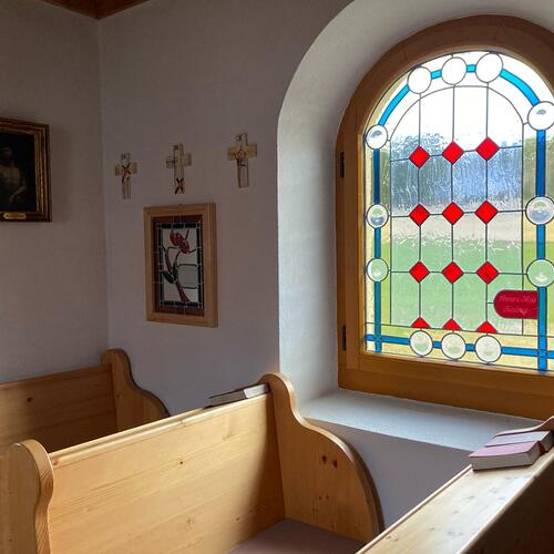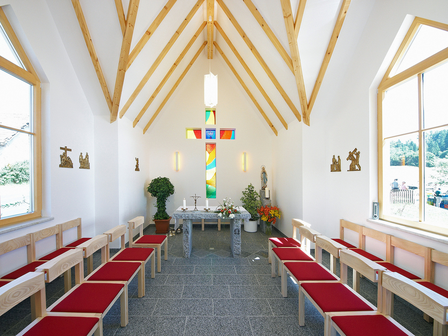 Die Alte Kapelle wurde im Jahre 1976 zum letzten mal Renoviert. Sie stand an einer verkehrsbehindernden Engstelle. Das war auch der Anlass, die neue Kapelle an einer anderen Stelle neu zu errichten. Am 22. 6 1997 wurde die neue Kapelle feierlich durch Bischofsvikar Wilfried Kreuth eingeweiht. Sie wurde dem heiligsten Herzen Jesu geweiht. Den Baugrund stellte Herr Anton Dürnitzhofer zur Verfügung. |