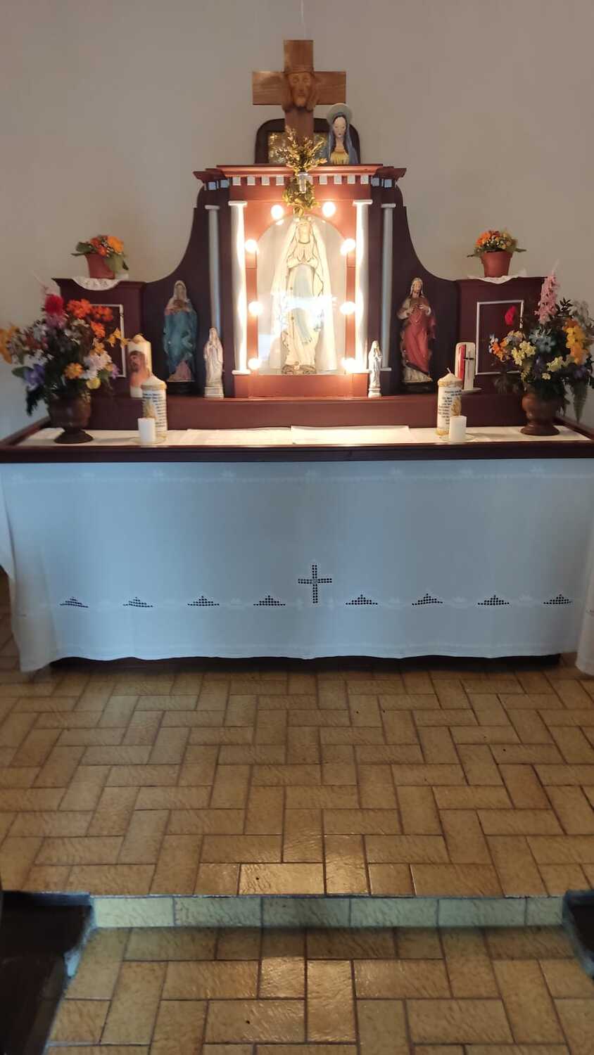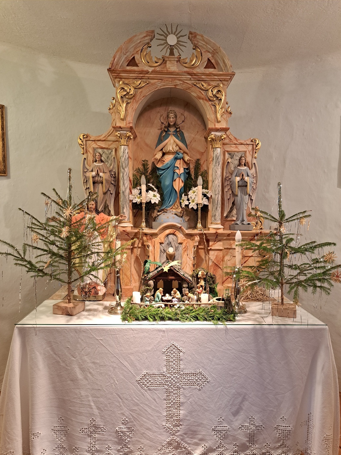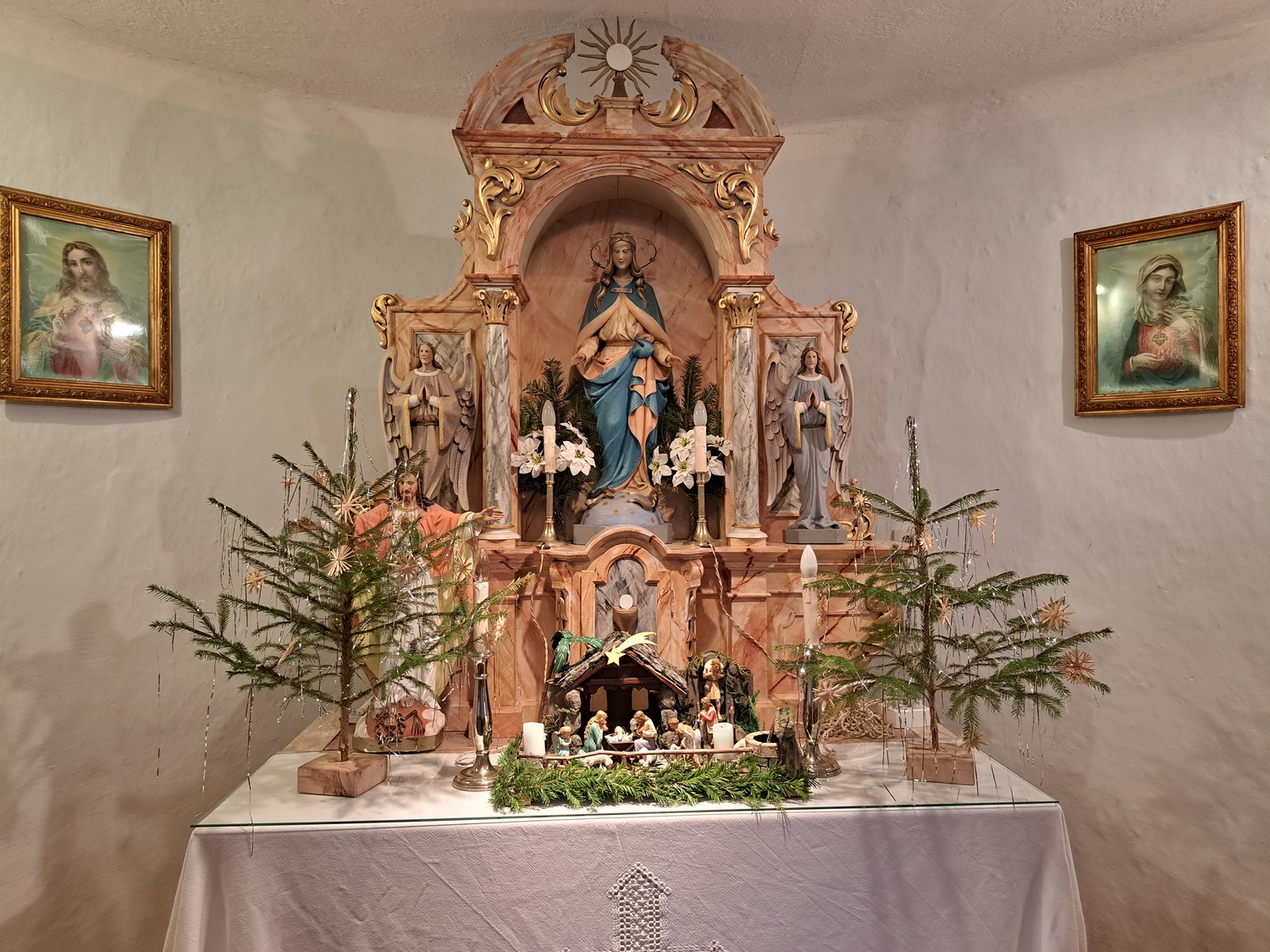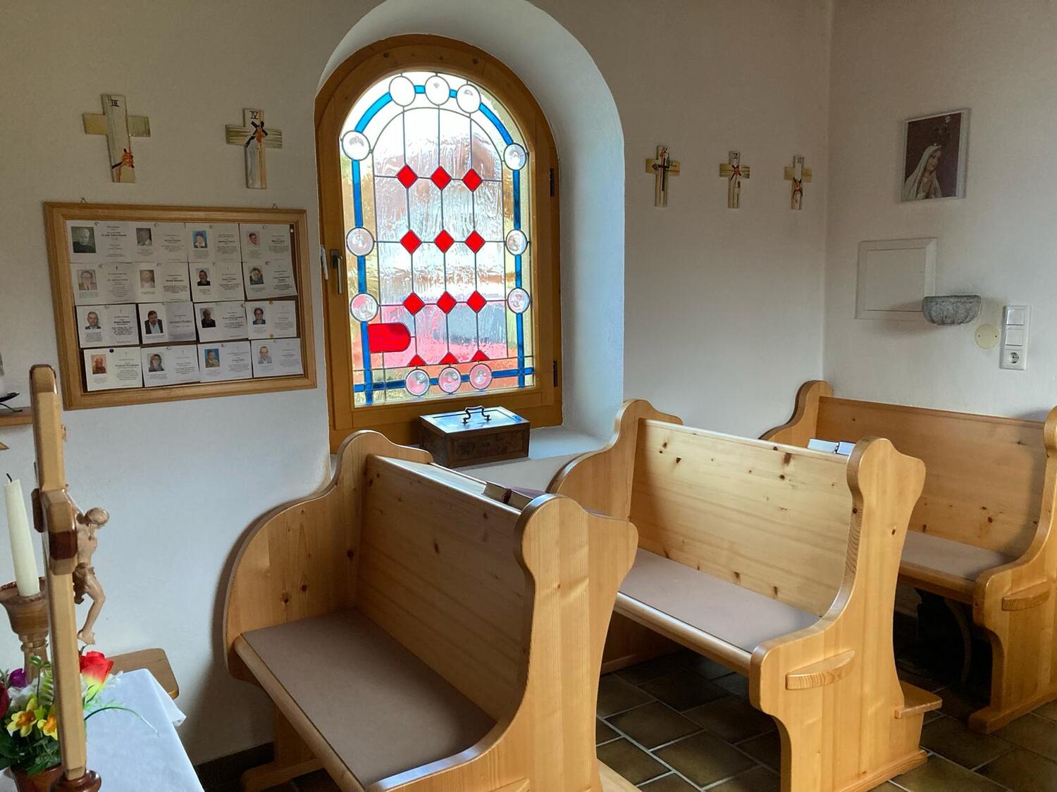 Jeden 1. Mittwoch im Monat um 19:30 Uhr Rosenkranzgebet (1. Mittwoch im Mai Maiandacht) Jeder Freitag in der Fastenzeit um 18:00 Kreuzwegandacht Im Advent Rosenkranz an den ersten Adventsonntagen, dann ab 14.12. bis 22.12. Herbergsuche in der Kapelle Eine Kapellenmesse Teilnehmer aus der Pfarrbevölkerung sind herzlich willkommen. Content 1 |