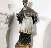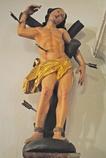 | Ein heiliger Johannes von Nepomuk (123 cm) und ein heiliger Sebastian (112 cm) sind noch im Bereich des Mittelschiffes links und rechts unterhalb der Emporen Brüstung zu erwähnen. |
